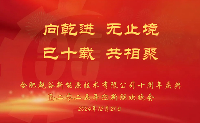 2024年12月21日,合肥乾谷新能源技术有限公司十周年庆典暨新春年会顺利举行。本次年会以“不忘初心,锐意进取”“乘风破浪,再创十年”为主题,通过颁发优秀员工奖、优秀干部,总经理致词、唱歌表演、相声表演、娱乐抽奖等形式,这场活动见证了乾谷在过去十年间所开启的非凡历程,现场充满了欢声笑语以及自豪之情。